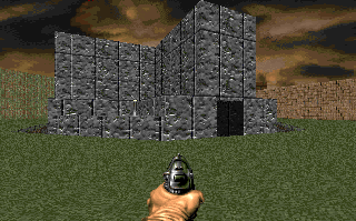 Single-patch, 128X128 wall texture. Large building blocks carved from black volcanic rock.